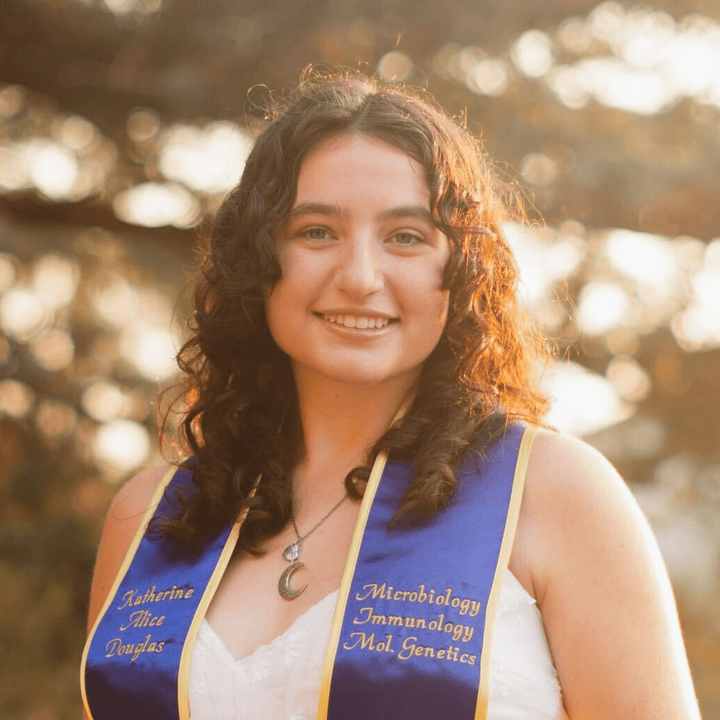 Katie studied microbiology, immunology, and molecular genetics.