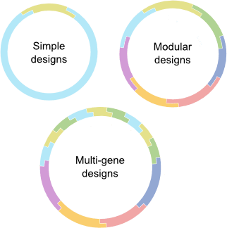 Use toolkits to support plasmid designs of different levels of complexity, from simple two-part assemblies to more advanced multi-part assemblies.